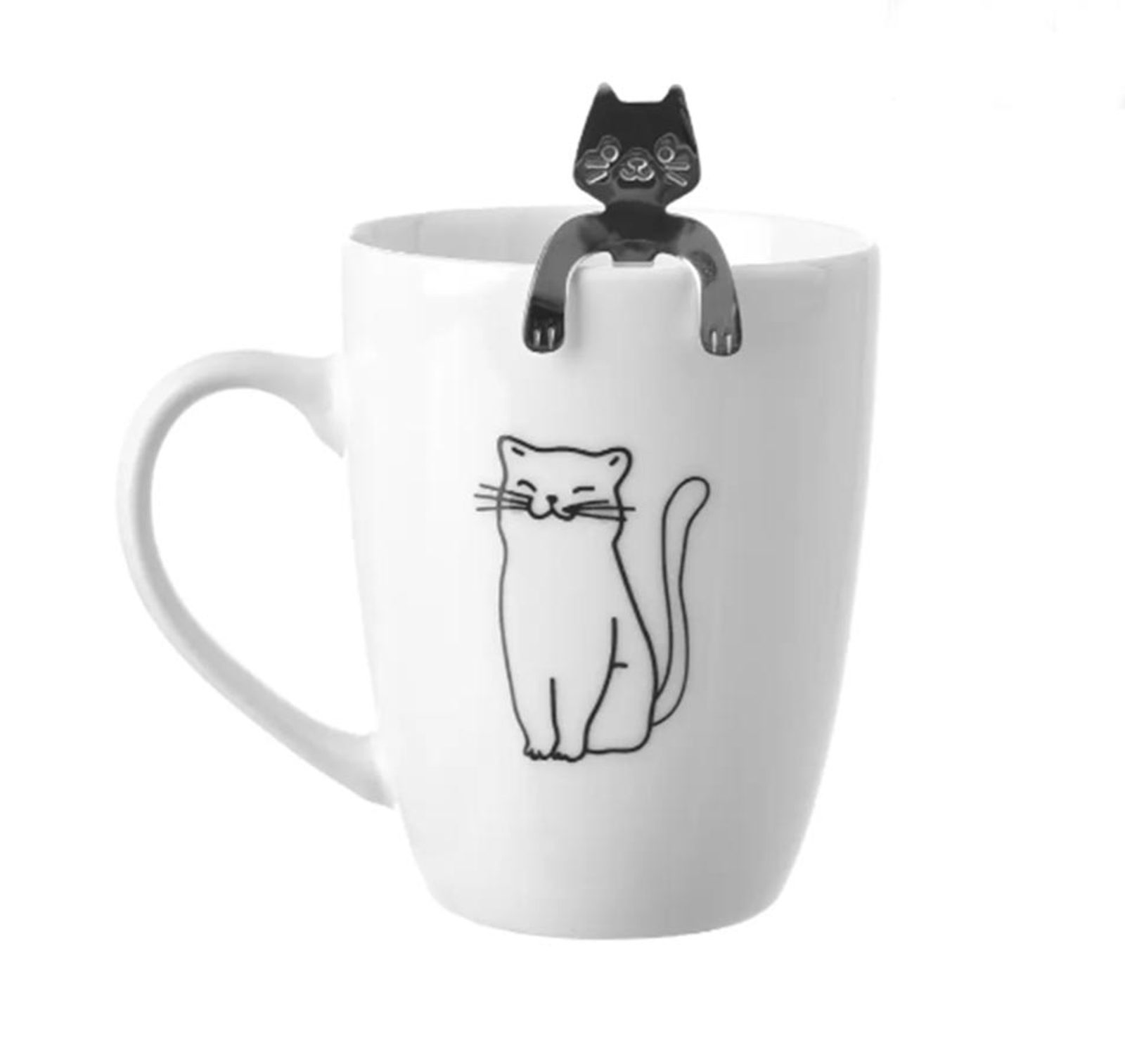Hrnek porcelán + lžička kočka O0577 - o. 320 ml