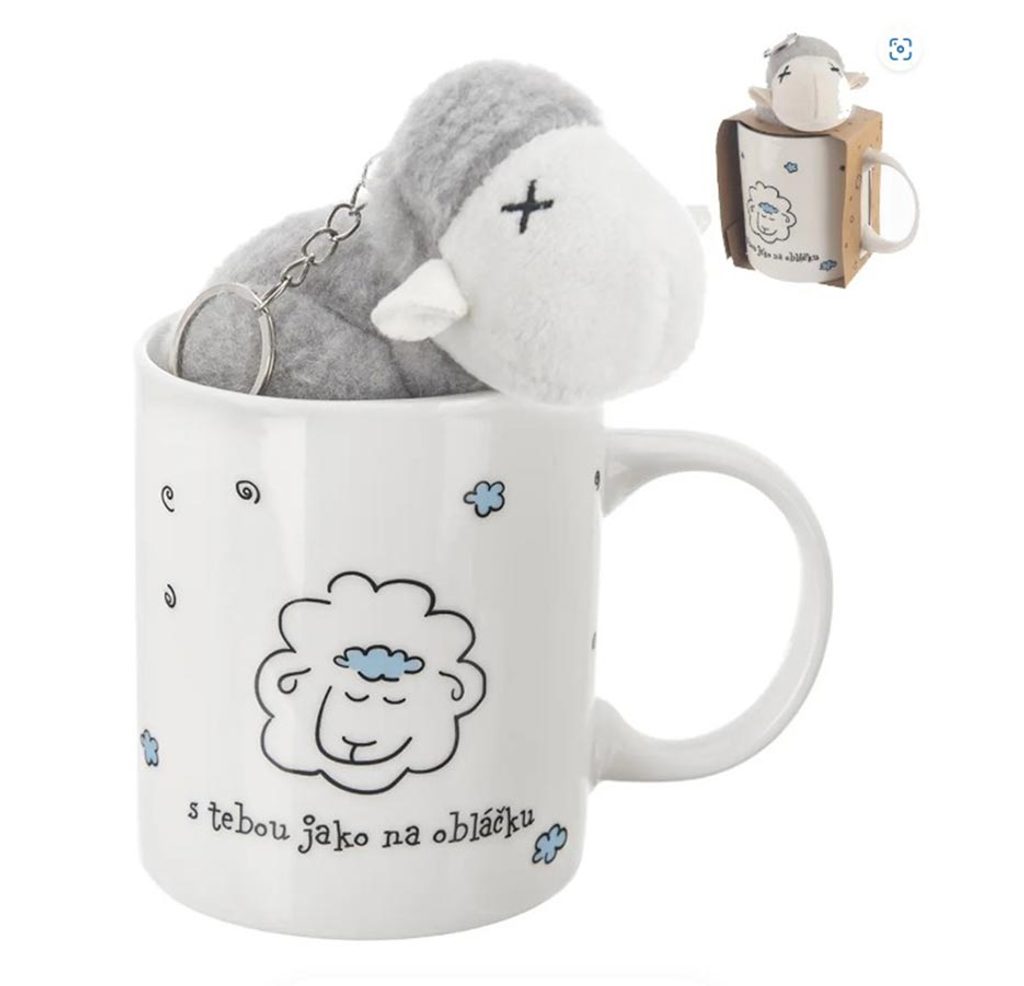 Hrnek porcelánový + plyšová ovečka 0,39 l O0320 - dia 8 x 9,5 cm ▶
