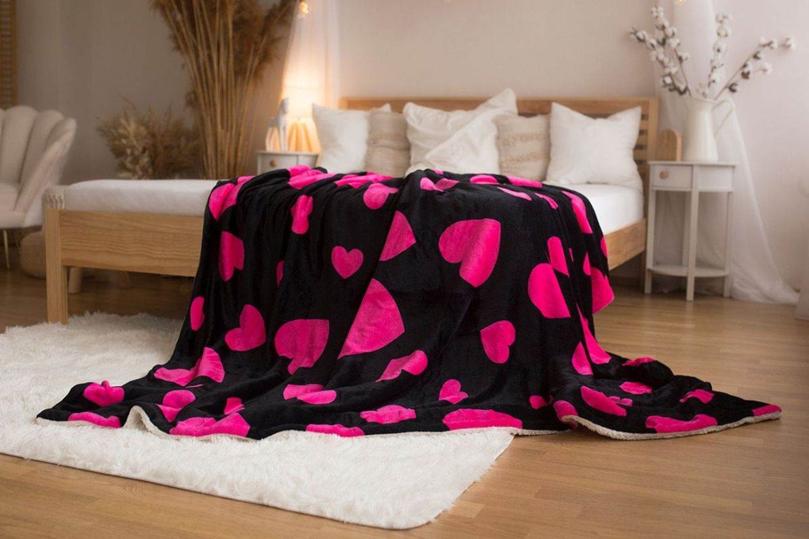 JERRY FABRICS Deka mikroplyš s beránkem Srdce Polyester, 140/200 cm