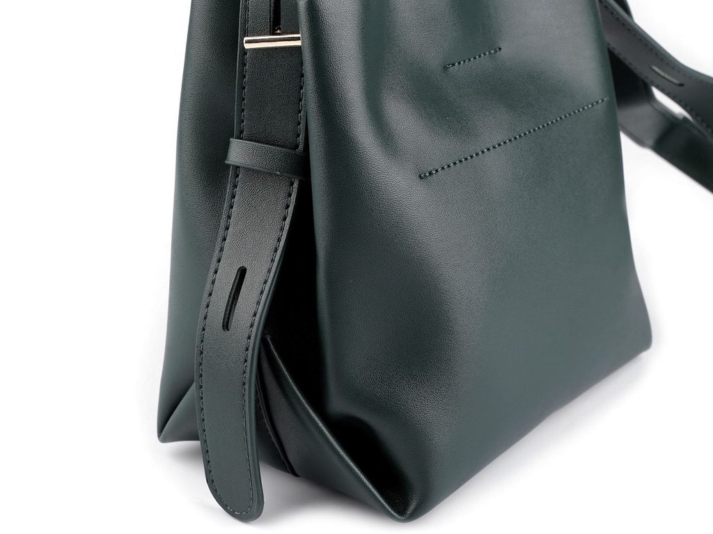 Vnitřní prostor má rozdělený na 2 kapsy s magnetickým zapínáním. Mezi nimi je přepážka, ve které je kapsa na zip. Uvnitř kabelky je i malá plochá kapsa. Součástí kabelky je ucho do ruky a odepínací nastavitelný popruh.