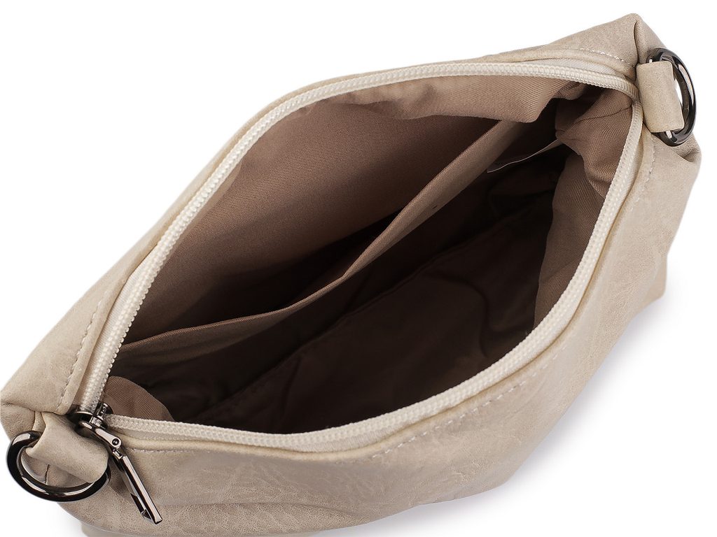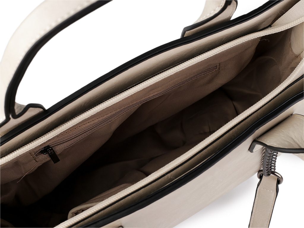 Velká kabelka má rozšířené dno, uzavírá se na zip. Disponuje velkým prostorem. Uvnitř najdete tři postranní kapsy, z nichž jedna je na zip.