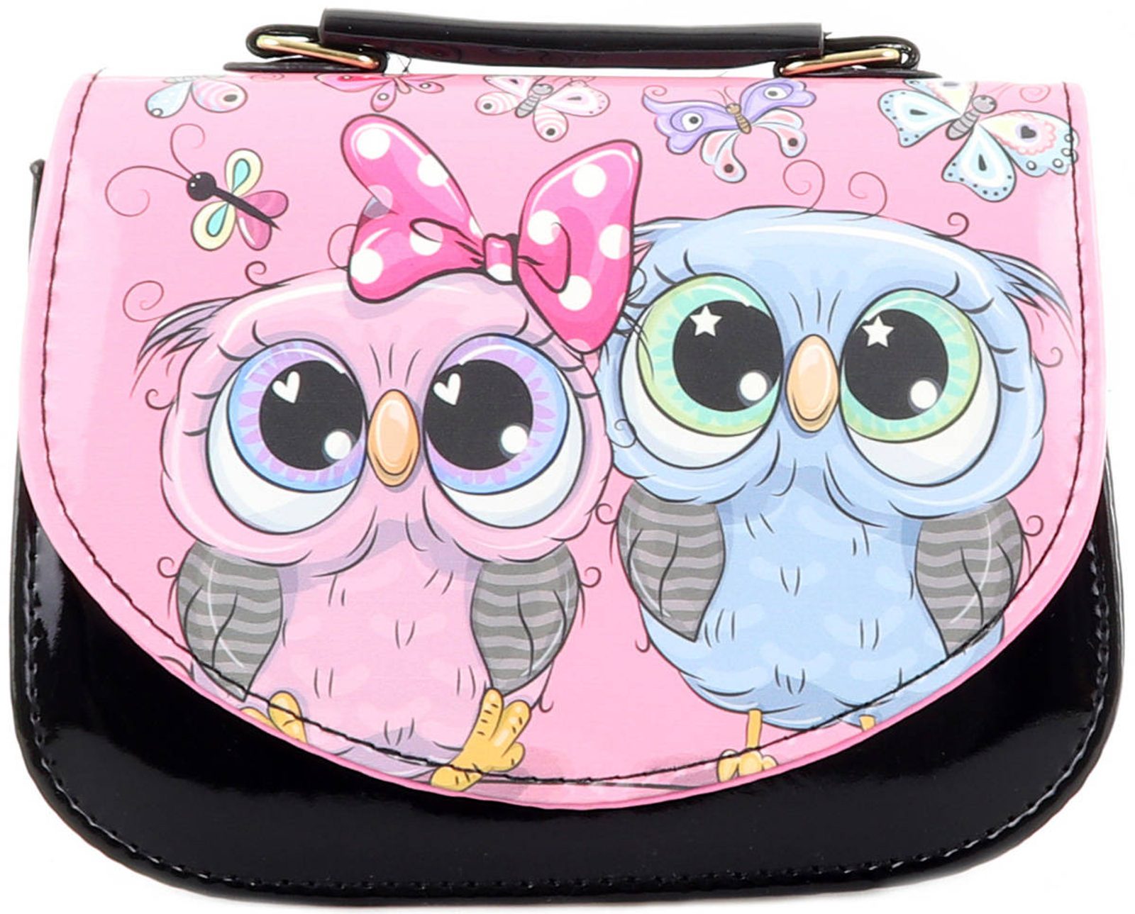 Kabelka dětská černá sovičky 18x15cm plast
