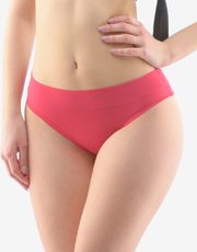 Kalhotky klasického střihu se širším bokem, dámské šité prádlo. Pasový kraj je začištěný širším lemem ze stejného materiálu. Nohavičky jsou začištěné úzkým lemem ze stejného materiálu. Kalhotky jsou jednobarevné.