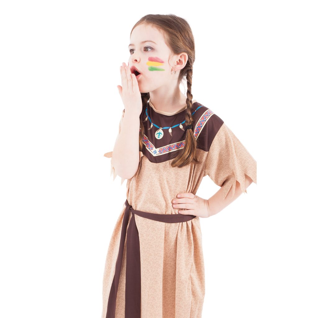 Stylový karnevalový kostým v motivu indiánské slečny! Kostým hnědé barvy ve velikosti M je určen pro děvčata ve věkovém rozmezí 6-8 let (116-128cm). Staň se největší hvězdou karnevalu!