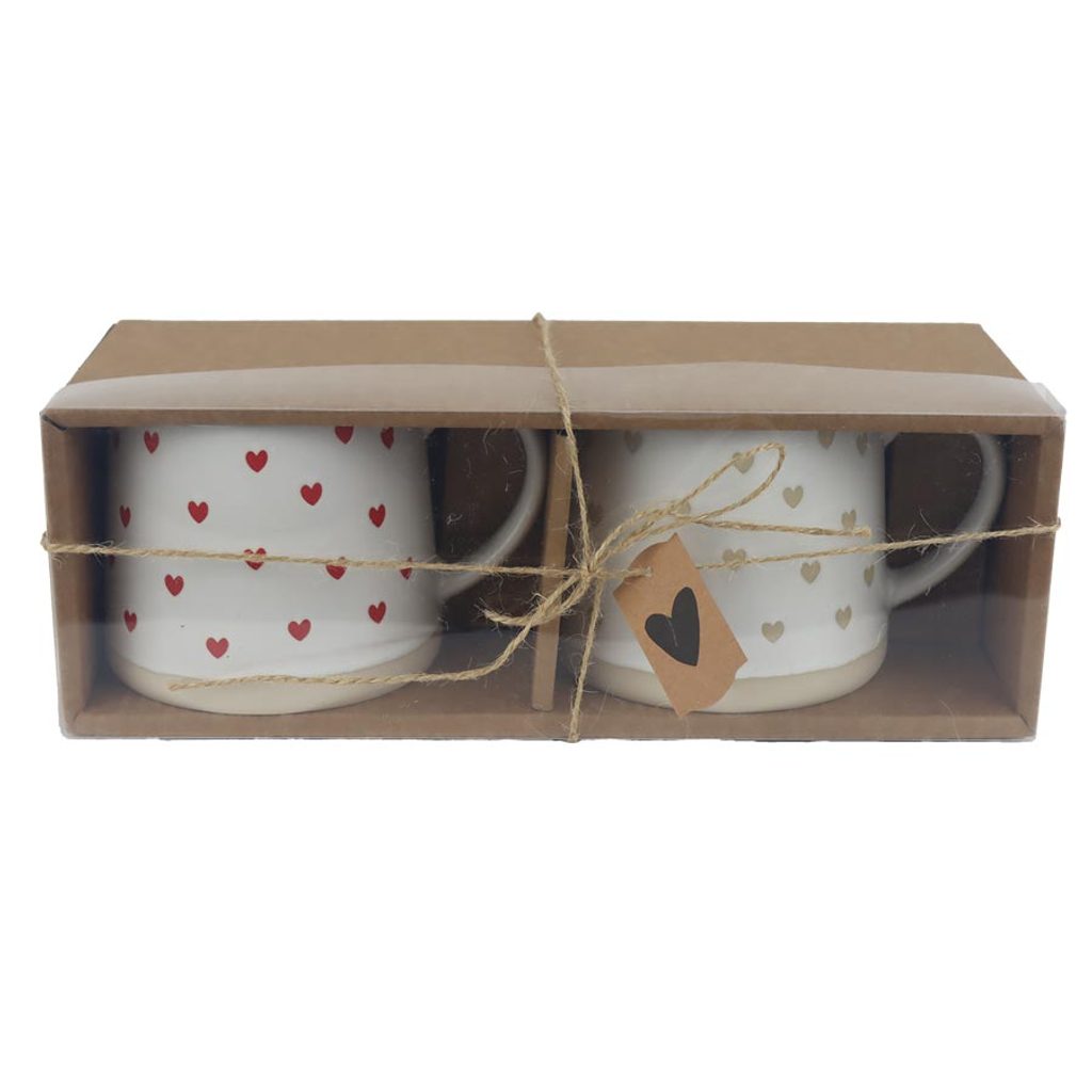 Sada keramických hrníčků se srdíčky v dárkové krabičce. Sada obsahuje 2 hrníčky. Hrnek má objem 360 ml.