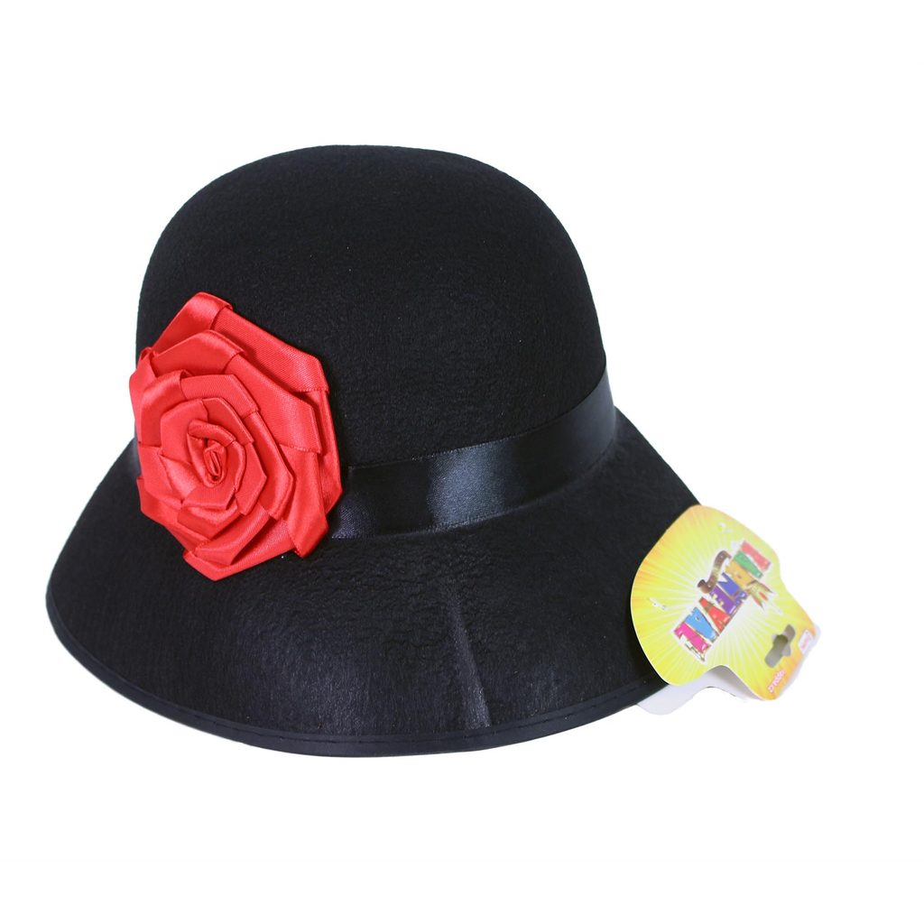 Karnevalový dámský klobouk, zdoben černou saténovou stuhou a mašlí. S tímto kloboukem budete hvězdou každé párty i večírku! Určen pro dospělé.