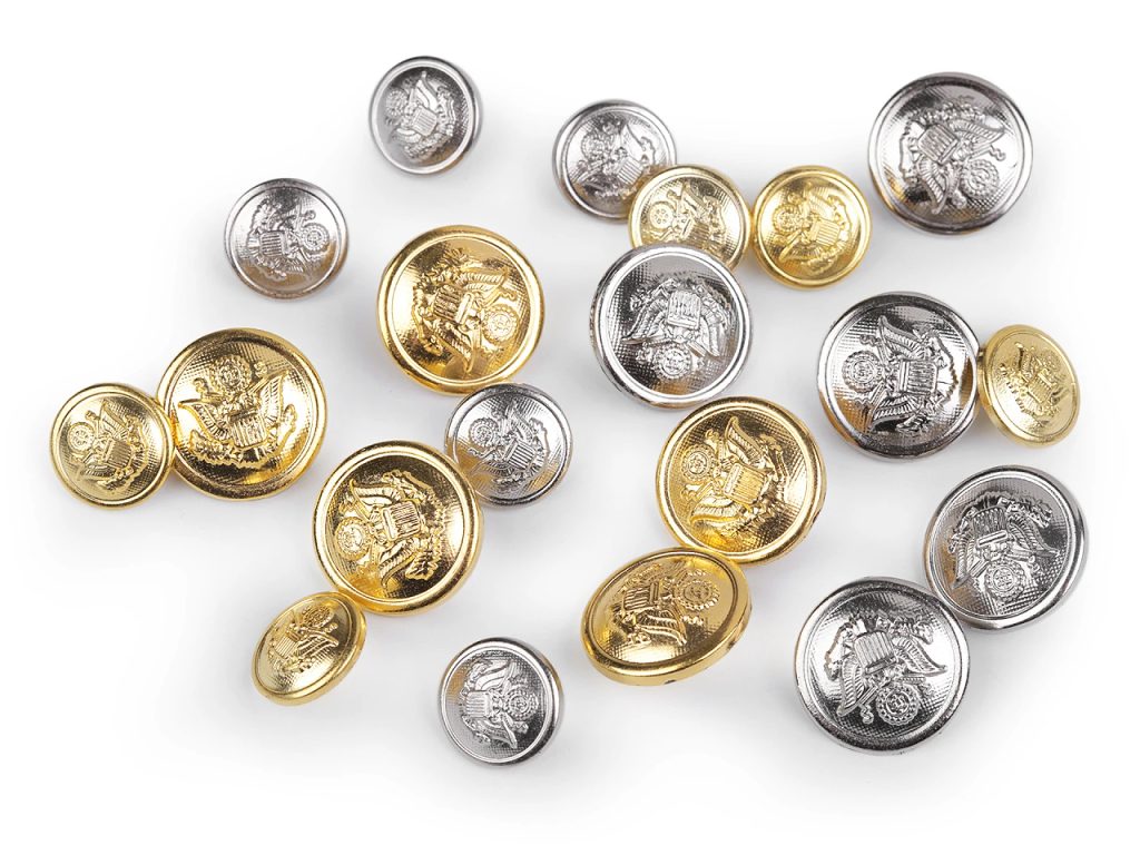 Knoflíky s erbem vyniknou na kabátcích, sakách, halenkách i doplňcích. Jsou lehké a mají spodní přišívání.