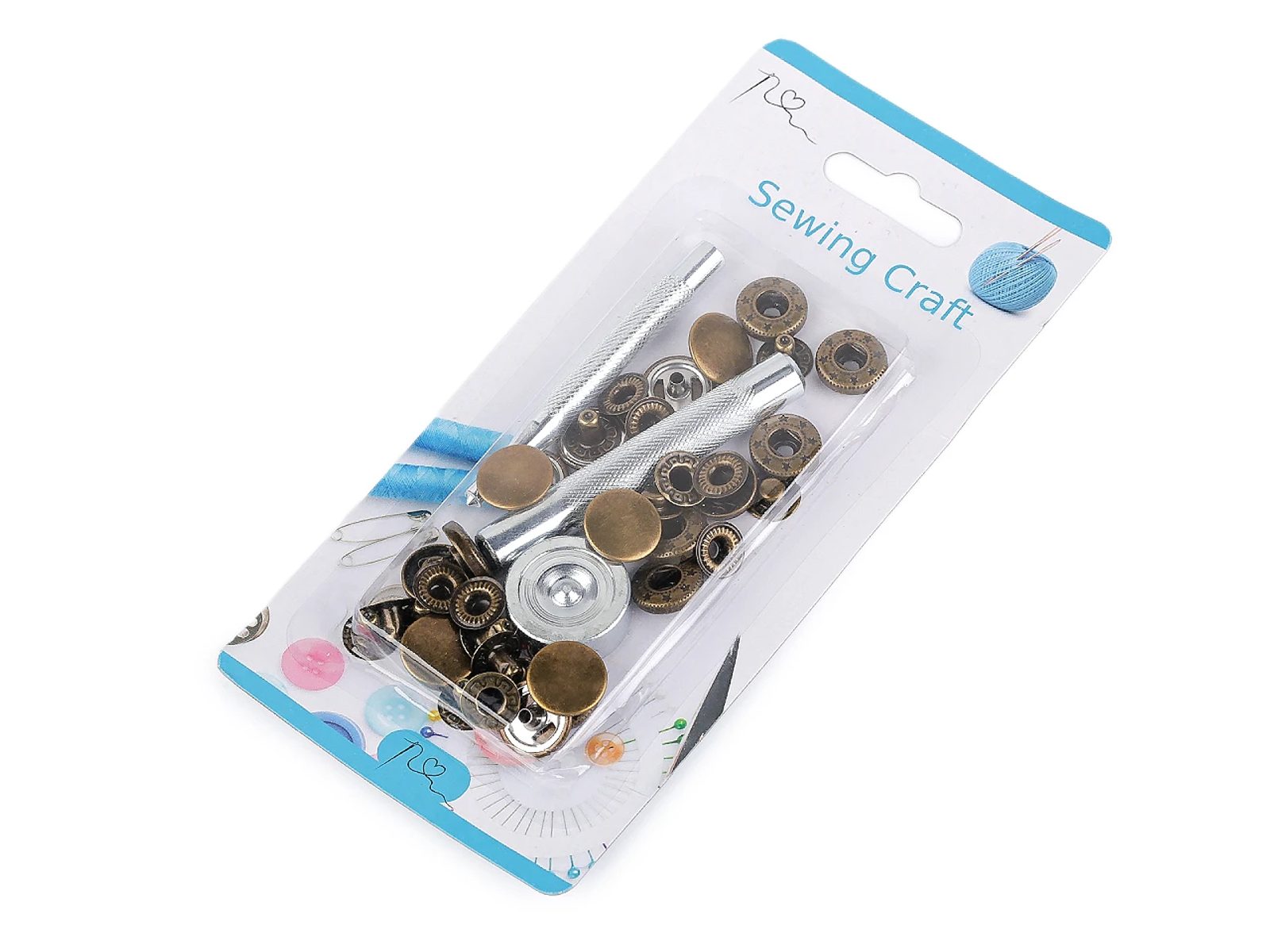 Knoflík stiskací Ø15 mm na středně silné látky, s ručním kovovým aplikátorem