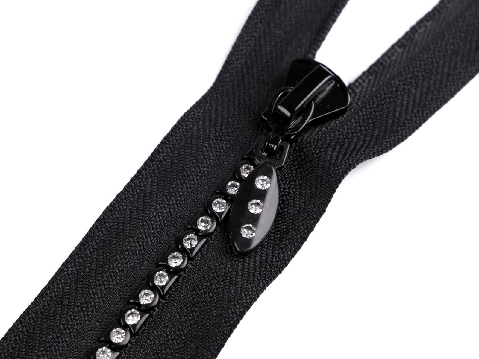Kostěný zip šíře 4 mm délka 40 cm se štrasovými kamínky