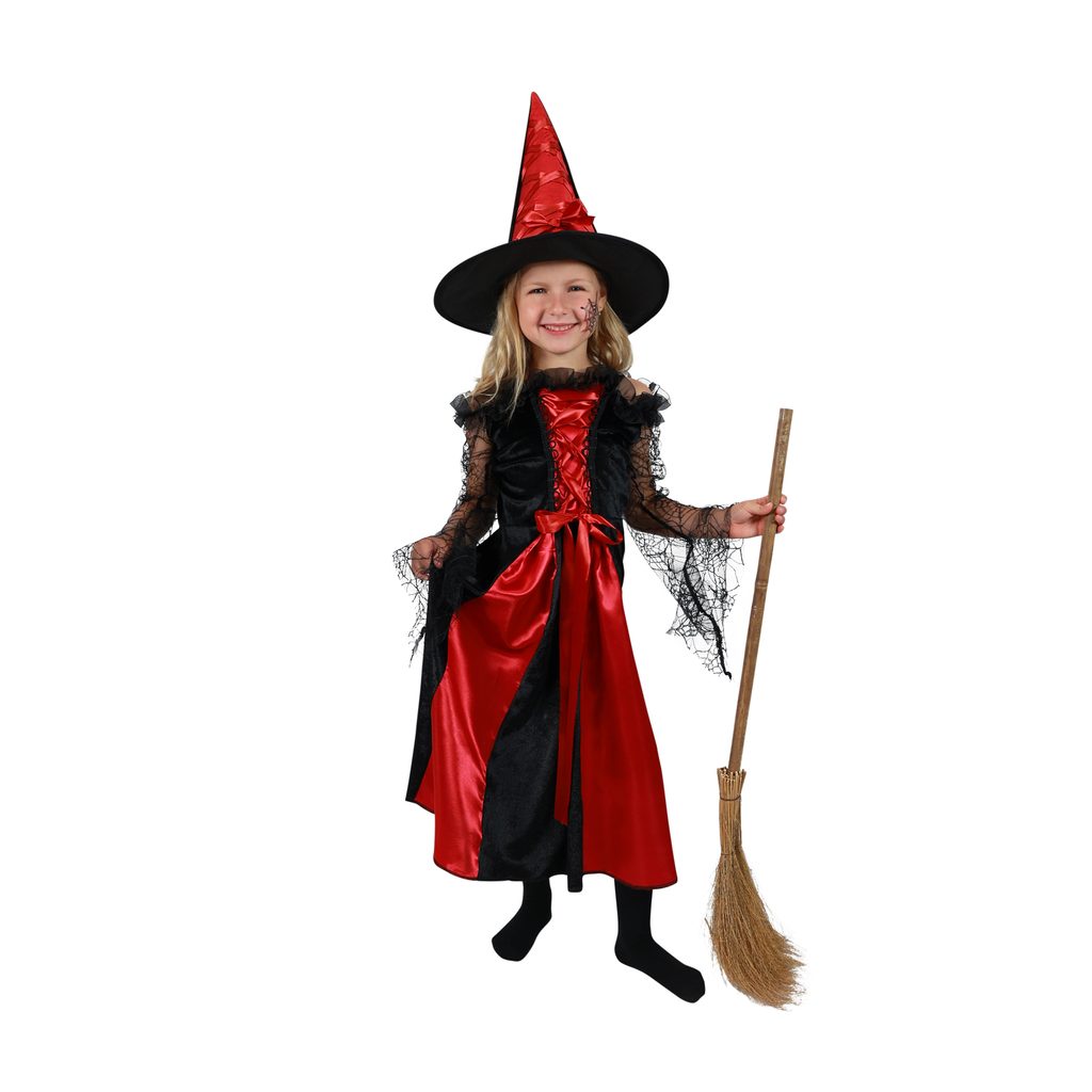 Dětský kostým čarodějnice černo-červená s kloboukem (M)