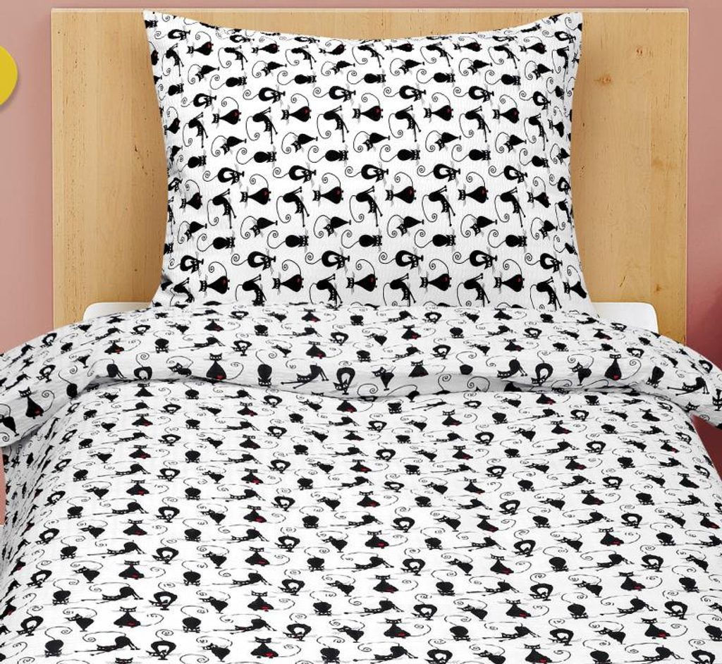 Povlečení krepové Junior - 140x200, 70x90 cm kočky - dětský motiv