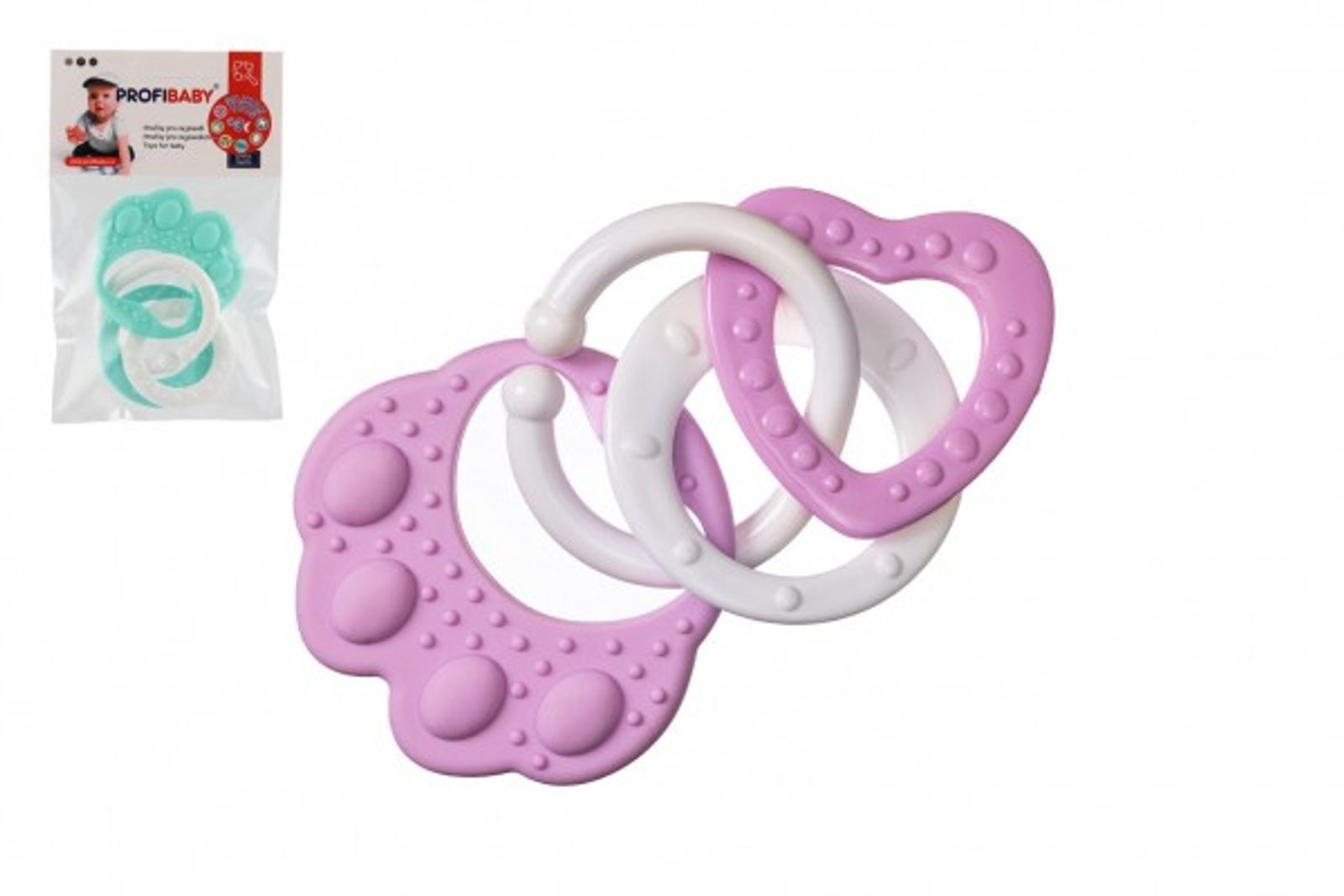 Kousátko medvědí tlapka s přívěsky silikon 2 barvy v sáčku 11x16cm 0m+ ▶