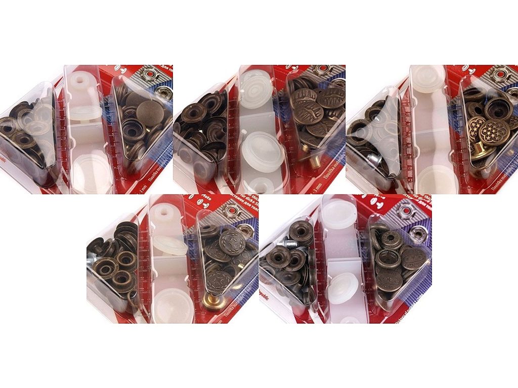 Stiskací knoflíky využijete ke spojování silnějších látek. Nýtování se provádí plastovým mini lisem, který je součástí balení.