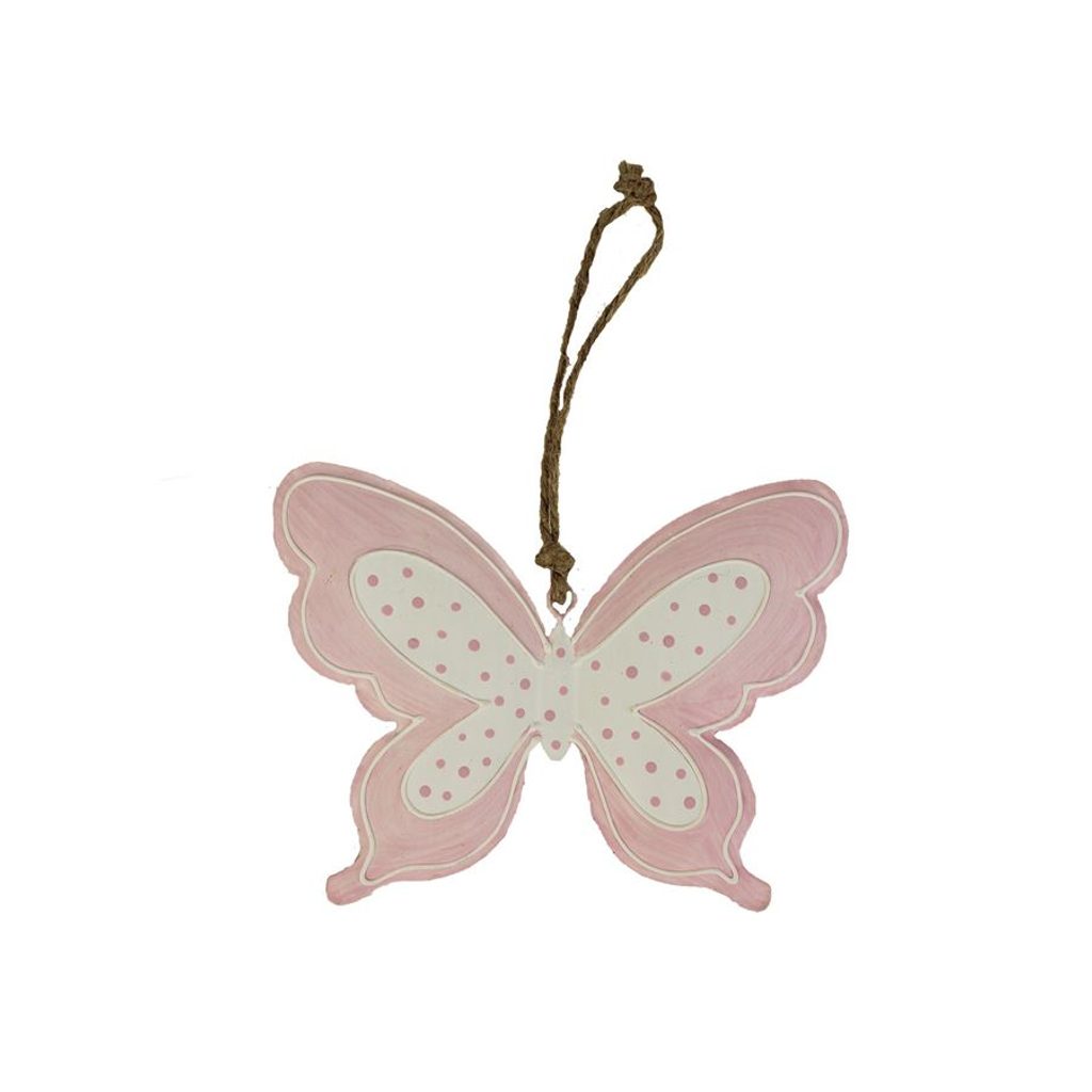Kovový dekorační motýl k zavěšení. Rozměry : 12,5 x 0,5 cm, výška 9 cm. Barva : kombinace růžová s bílou. Materiál : kov.