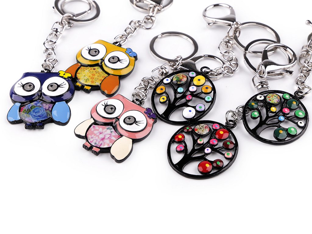 Kovový přívěsek na batoh / klíče sova, strom života ▶