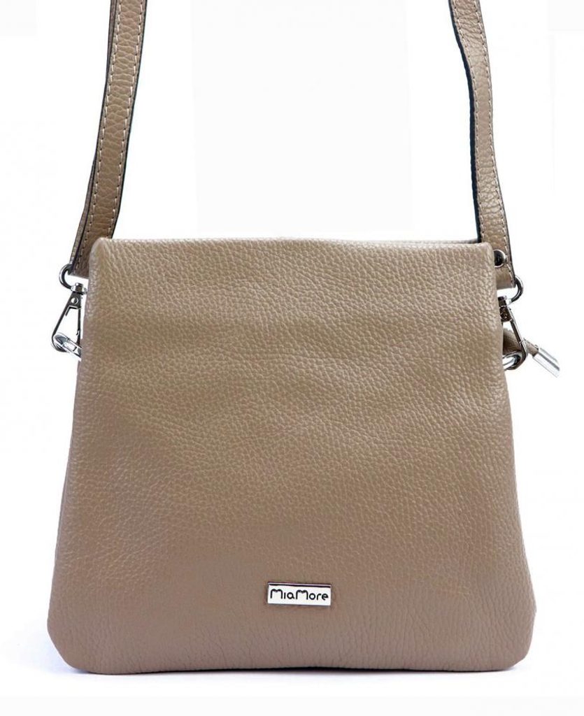MiaMore Kožená crossbody dámská kabelka se třemi oddíly středně šedá