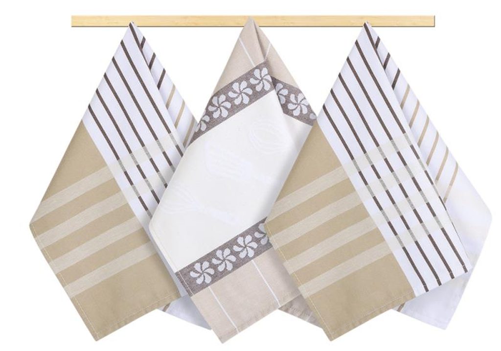 Kuchyňské utěrky - sada 3 kusů Béžová,Hnědá,Bílá 166 50x70 cm ▶