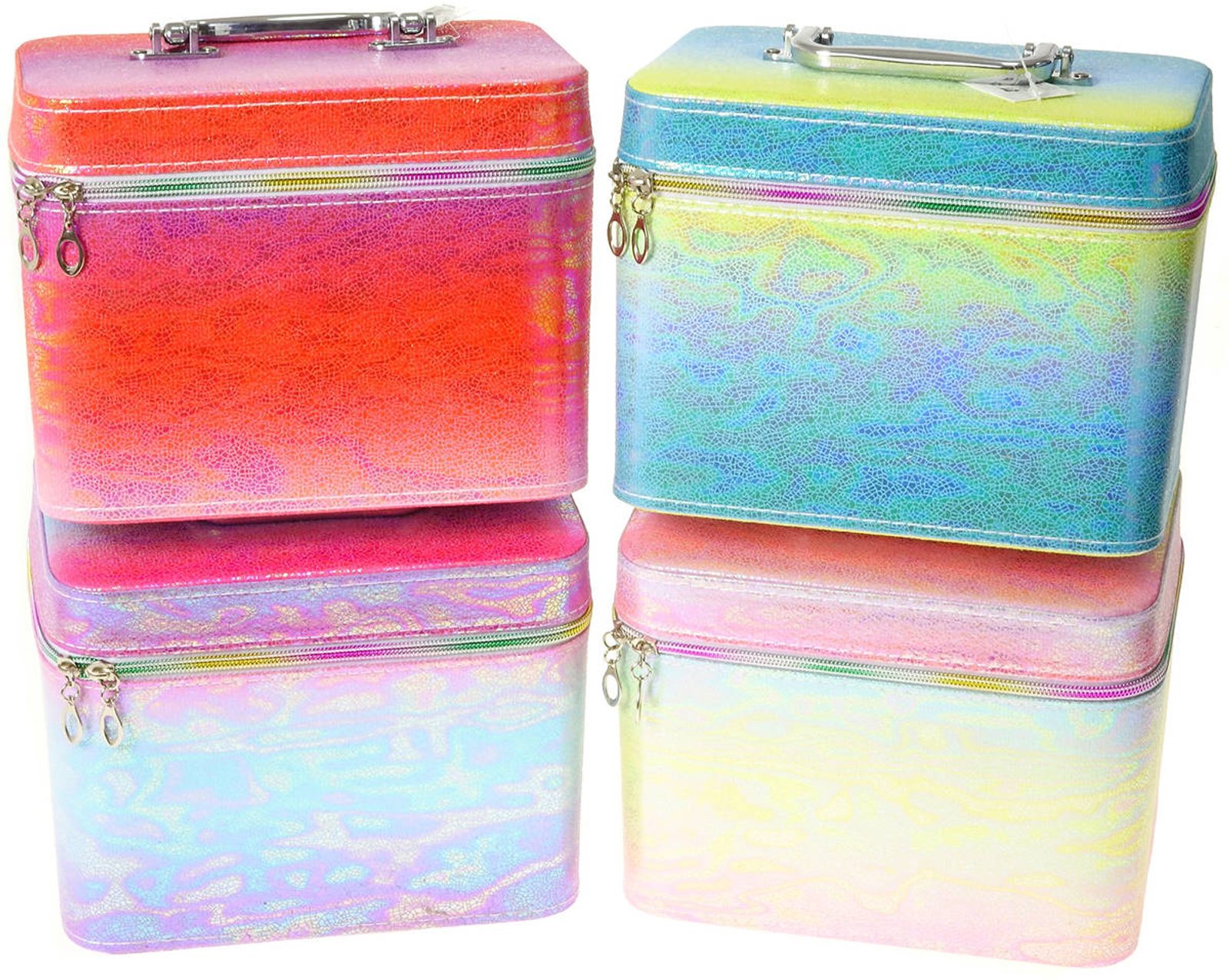 Kufřík dětský kosmetický barevný lesklý vel. L se zrcátkem na zip