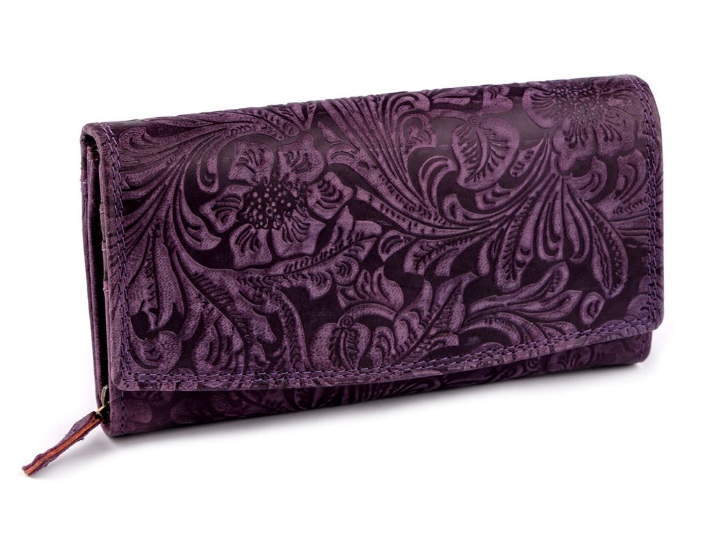 Dámská peněženka kožená s květy 10x19 cm
