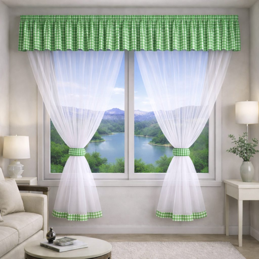 Voálový set s kanýrem Kanafas 2x 150x150 cm + kanýr 40x300 cm, kanafas tmavá zelená