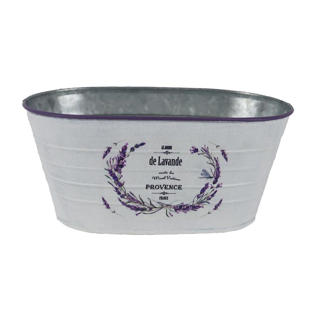 Květináč plechový motiv levandule ovál K4596/2 - Oval:23.5x13x10.5 Bottom:19x10.5