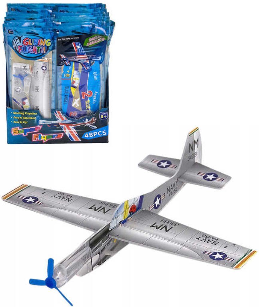 Letadlo bojové s vrtulí 19cm házecí polystyrenové k sestavení 8 druhů v sáčku
