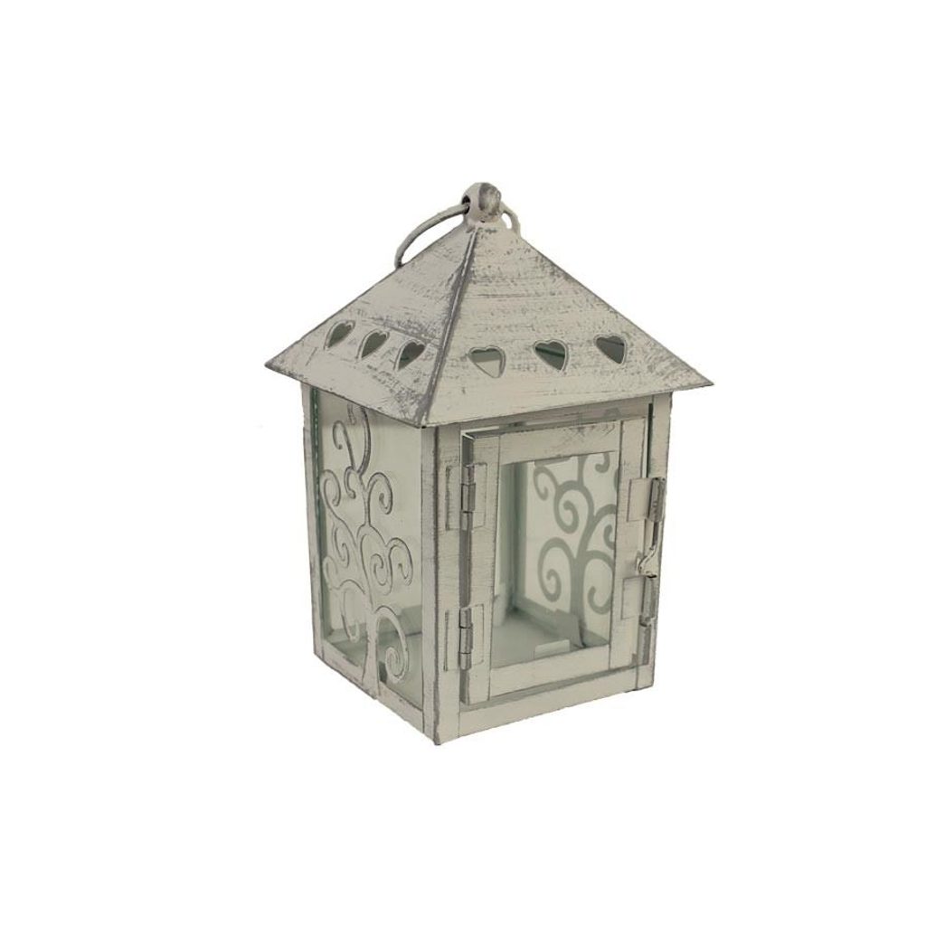 Mini bílá lucernička se srdíčky 11 cm – romantická dekorace plná lásky K2006