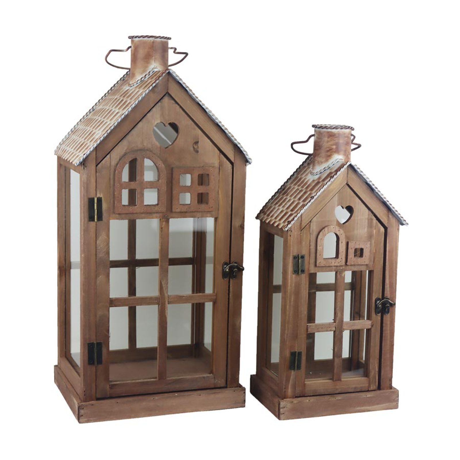 Sada 2 ks dřevěná lucerna, S/2 D7089 - výška 43cm, 56cm