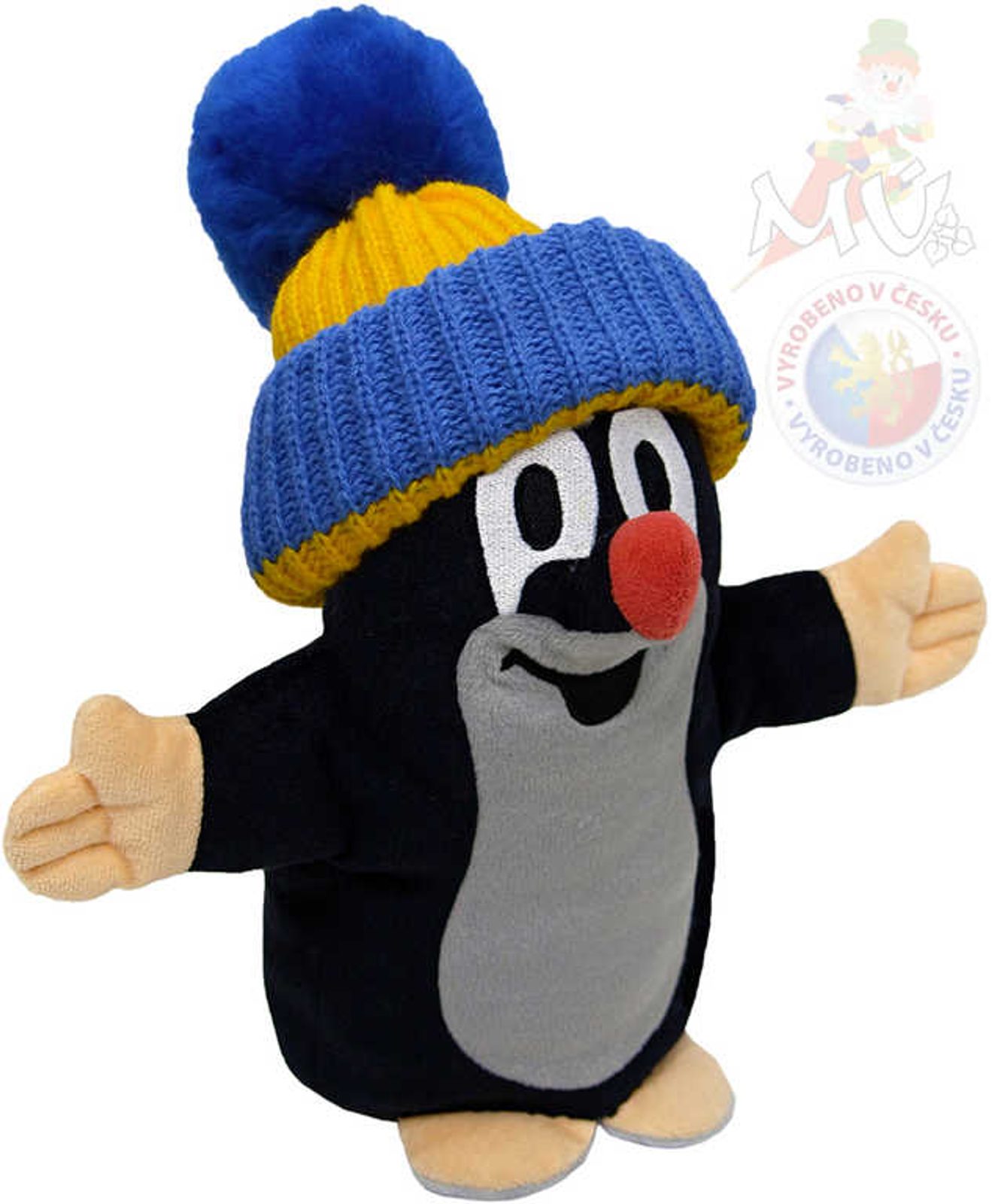 MORAVSKÁ ÚSTŘEDNA Krtek (Krteček) maňásek 25cm modro-žlutý kulich PLYŠ