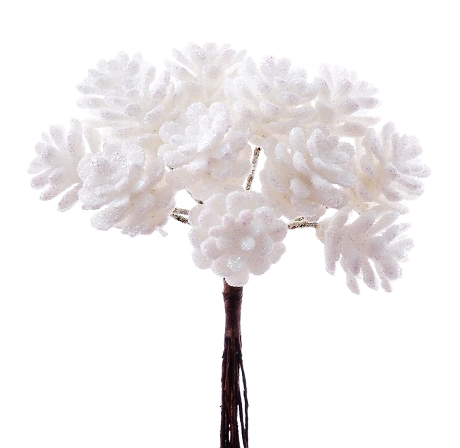Malé umělé šišky s glitry bílé 12 kusů ▶
