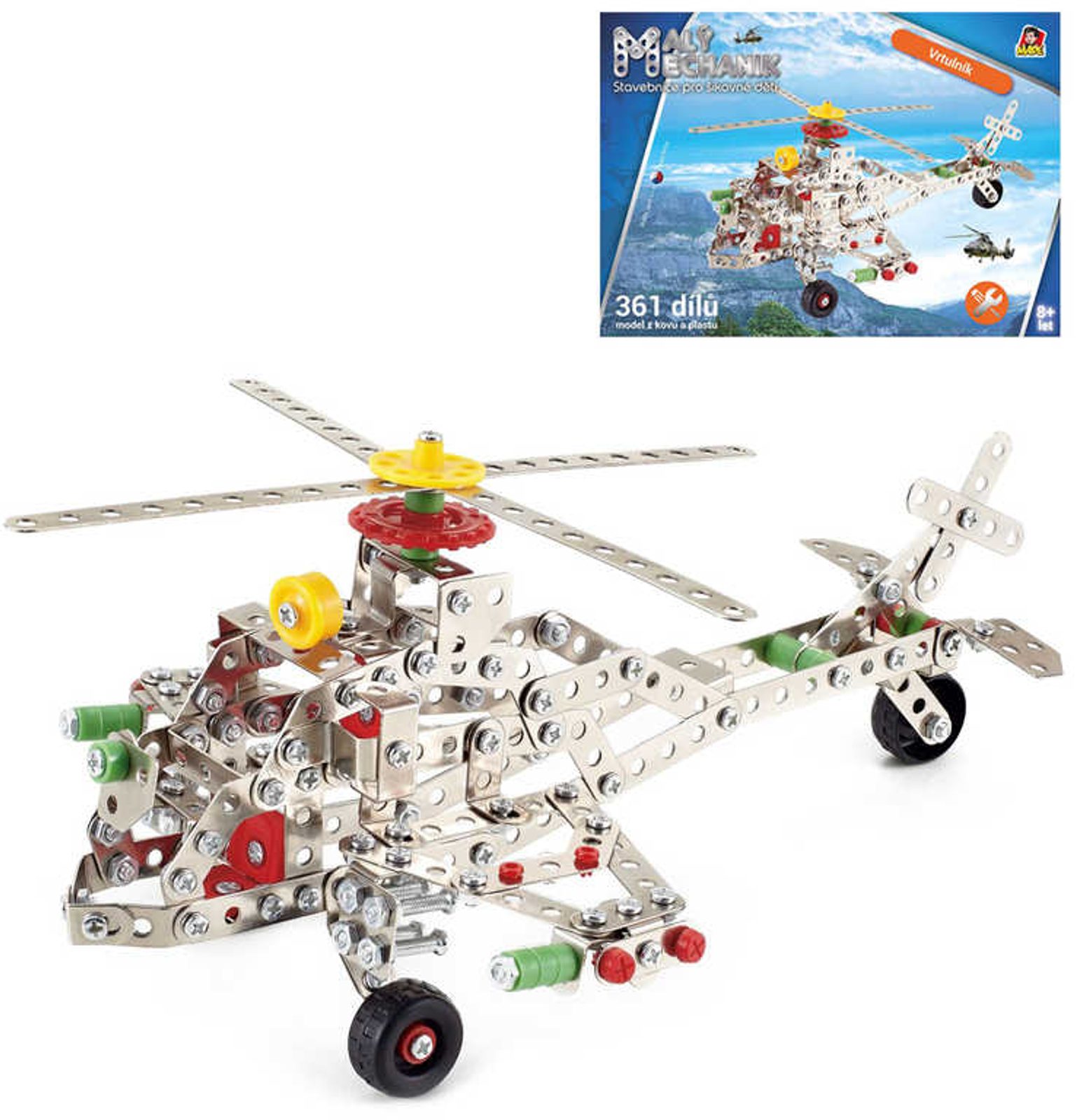 Malý mechanik army Vrtulník 364 dílů 4v1 Stavebnice typu Merkur kov plast v krabici