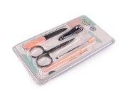 Manikúra obsahuje: nehtové nůžky, pilník, pinzetu, 5 kusů manikúrových nástrojů a 4 kusy nehtových kleští.