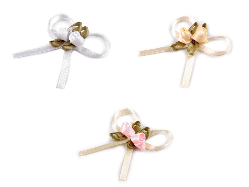 Mašlička s růžičkami je velice oblíbená, slouží především k ozdobení klopy svatebčanů. Mašlička je ze saténové stužky, je ozdobená párem růžiček. Mašličky můžete použít také k aranžování různých svatebních dekorací, k ozdobení svatebních oznámení, pozvánek, krabiček apod. Vyniknou i na módních doplňcích jako jsou klobouky, čelenky, kabelky, boty apod.