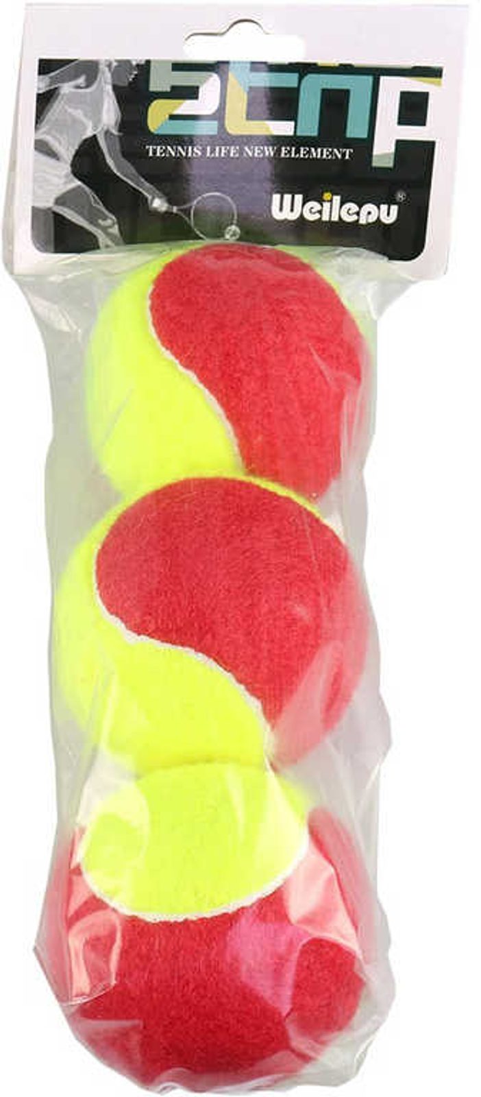 Míčky tenisové dvoubarevné neon žluto-červený set 3ks v sáčku
