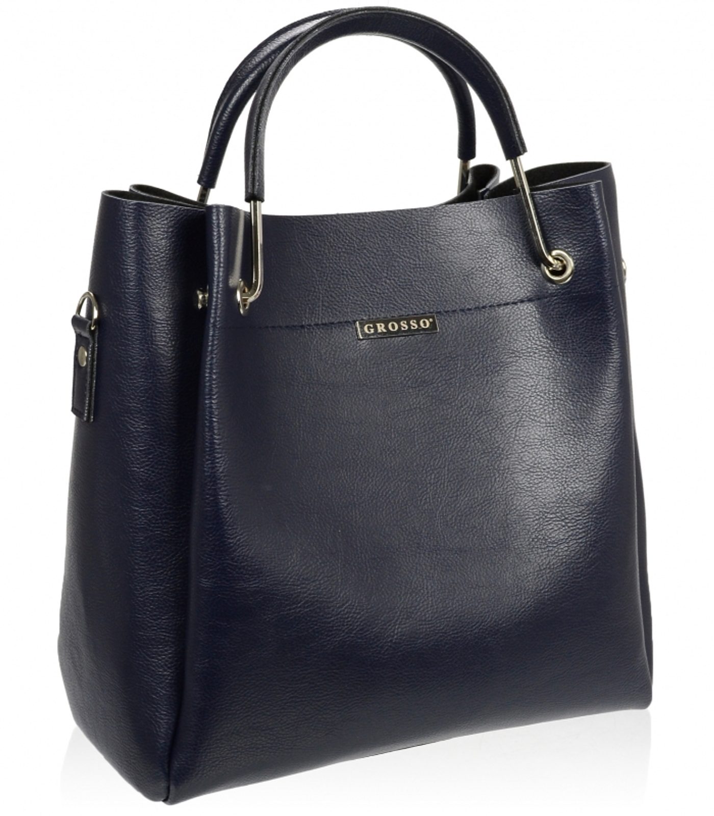 Modrá elegantní dámská kabelka S728 se stříbrnými doplňky GROSSO