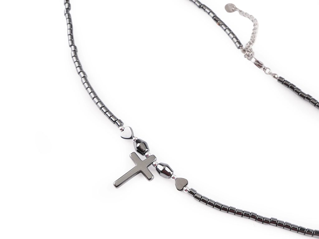 Náhrdelník hematitový srdce, křížek