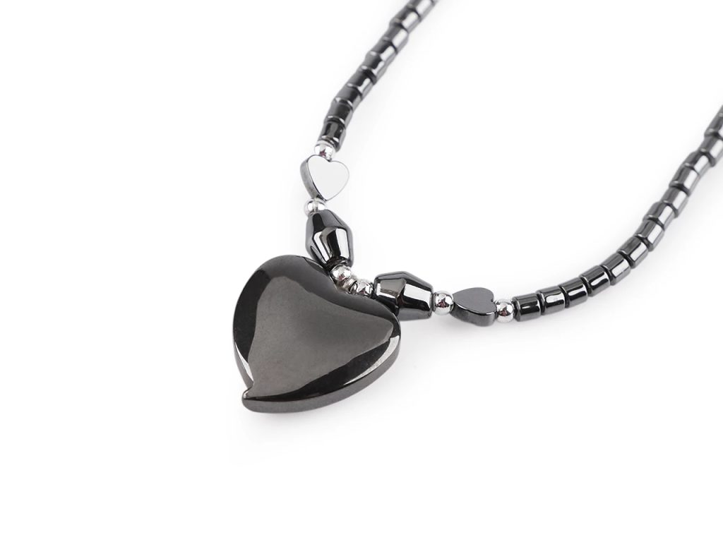 Náhrdelník hematitový srdce, křížek ▶