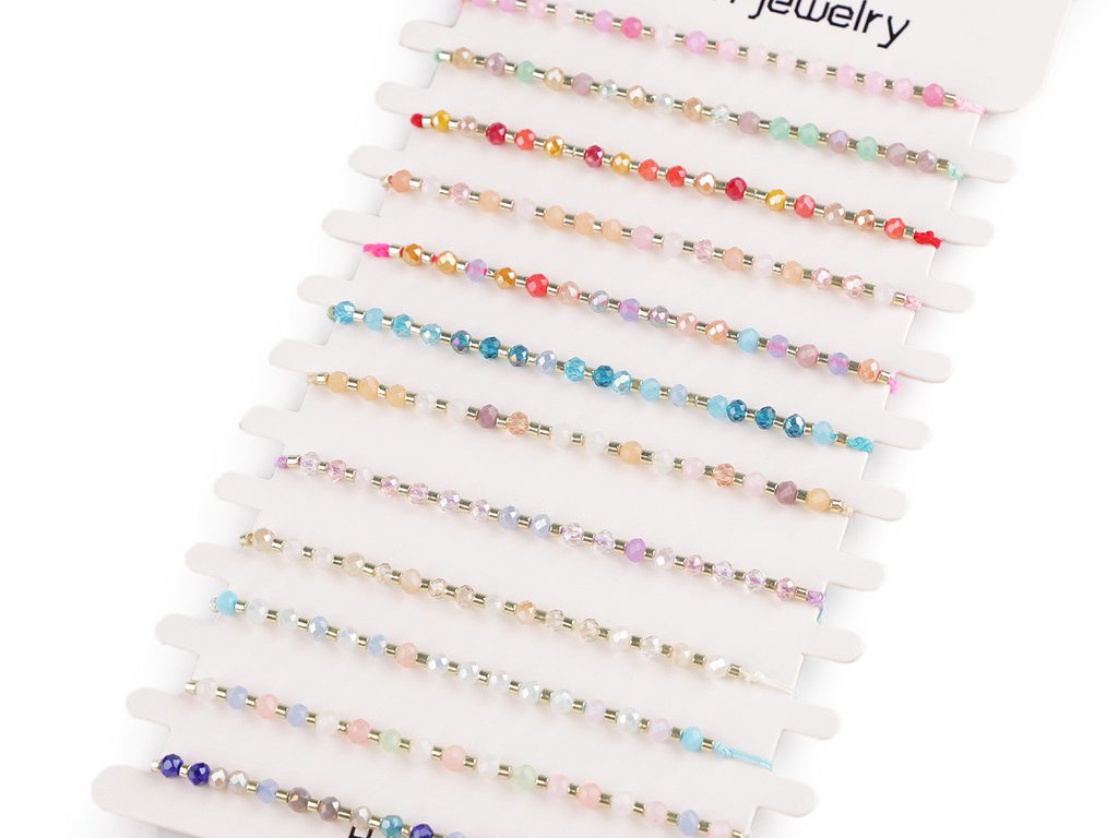 Náramky v mixu se prodávají jako sada 12 ks na papírové kartě k zavěšení.