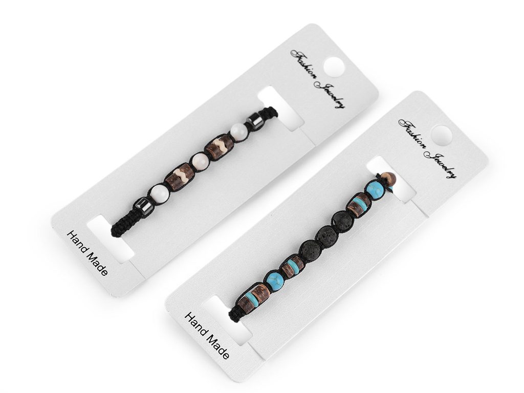 Náramek se prodává na papírové kartě, která se dá zavěsit na prodejní stojany.