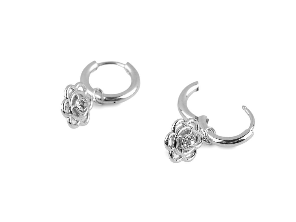 Náušnice z nerezové oceli kroužky, květ s broušeným kamínkem