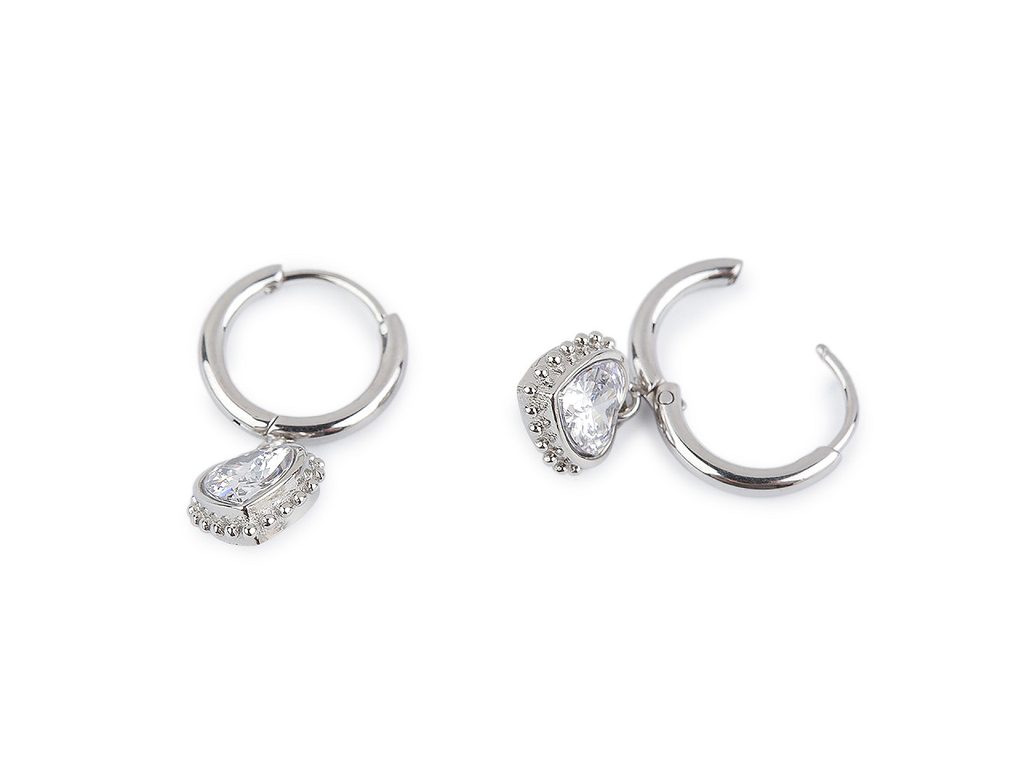 Náušnice z nerezové oceli kroužky, srdce s broušeným kamínkem