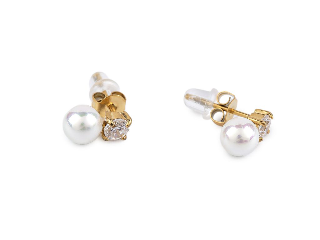 Náušnice z nerezové oceli s broušeným kamínkem a perlou