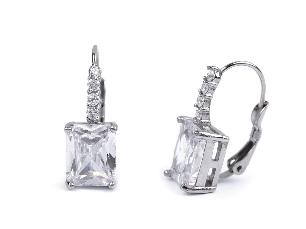 Náušnice z kvalitní nerezové oceli jsou ozdobené broušeným kamenem, který se díky lomu světla na jednotlivých ploškách elegantně leskne. Nad ním jsou umístěné další menší broušené kamínky. Skvěle doplní slavnostní šaty, využijete je i na denní nošení.