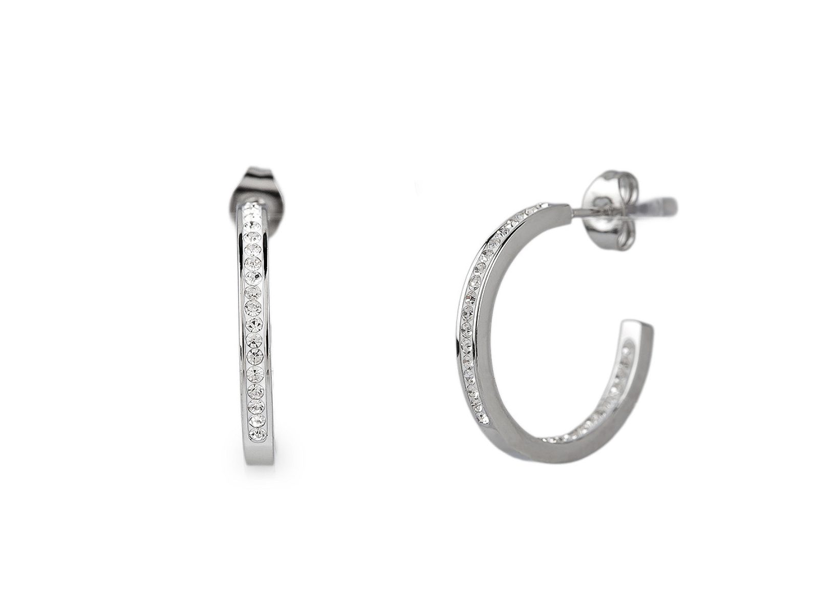 Náušnice z kvalitní nerezové oceli jsou na přední straně osázené jednou řadou broušených kamínků. Mají oslnivý třpyt, jsou nepřehlédnutelné. Jsou ideální volbou pro každodenní nošení i pro speciální příležitosti. Jejich jednoduchý, ale přesto výrazný design se snadno kombinuje s různými styly a outfity. Perfektně doplní jak formální, tak neformální oblečení, a dodají vašemu vzhledu ten správný nádech elegance. Mají tvar neuzavřeného kruhu.
