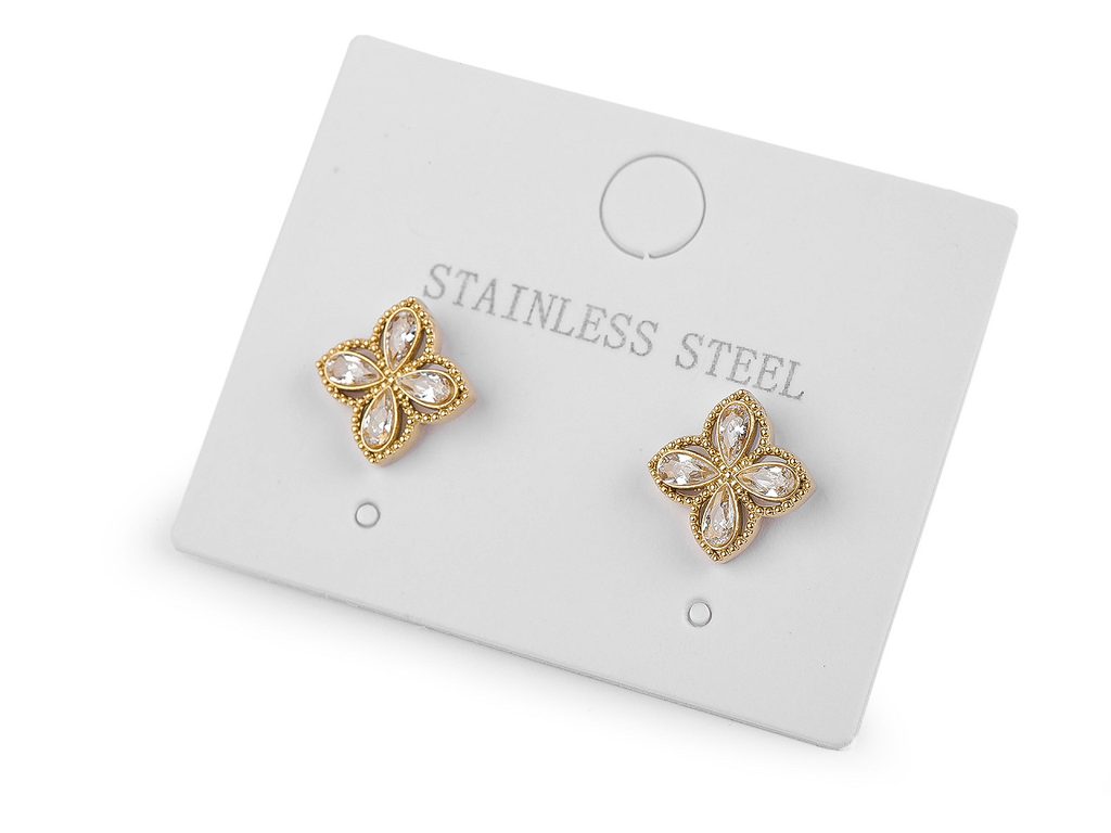 Náušnice z nerezové oceli s broušenými kamínky květ trojlístek