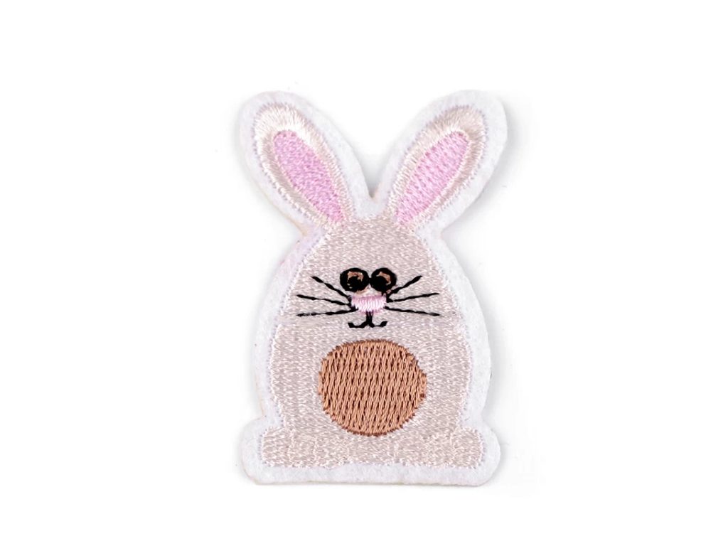 Nažehlovačka se zajíčkem je velice kvalitní, má celoplošnou výšivku. Oživí oblečení i doplňky.