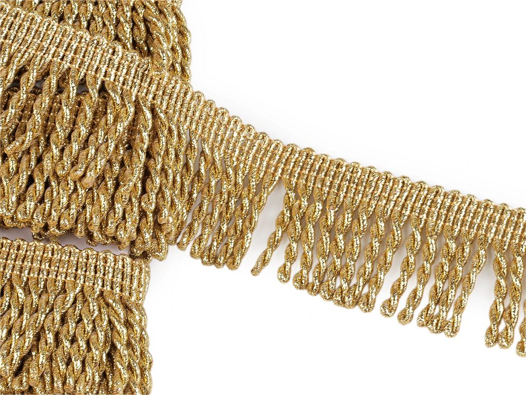 Třásně lurexové kroucené šíře 50 mm METRÁŽ