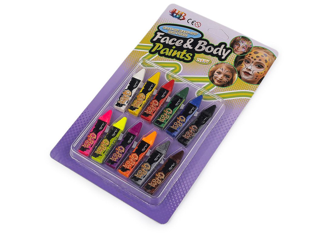 Barvy / pastelky na obličej, sada 12 ks