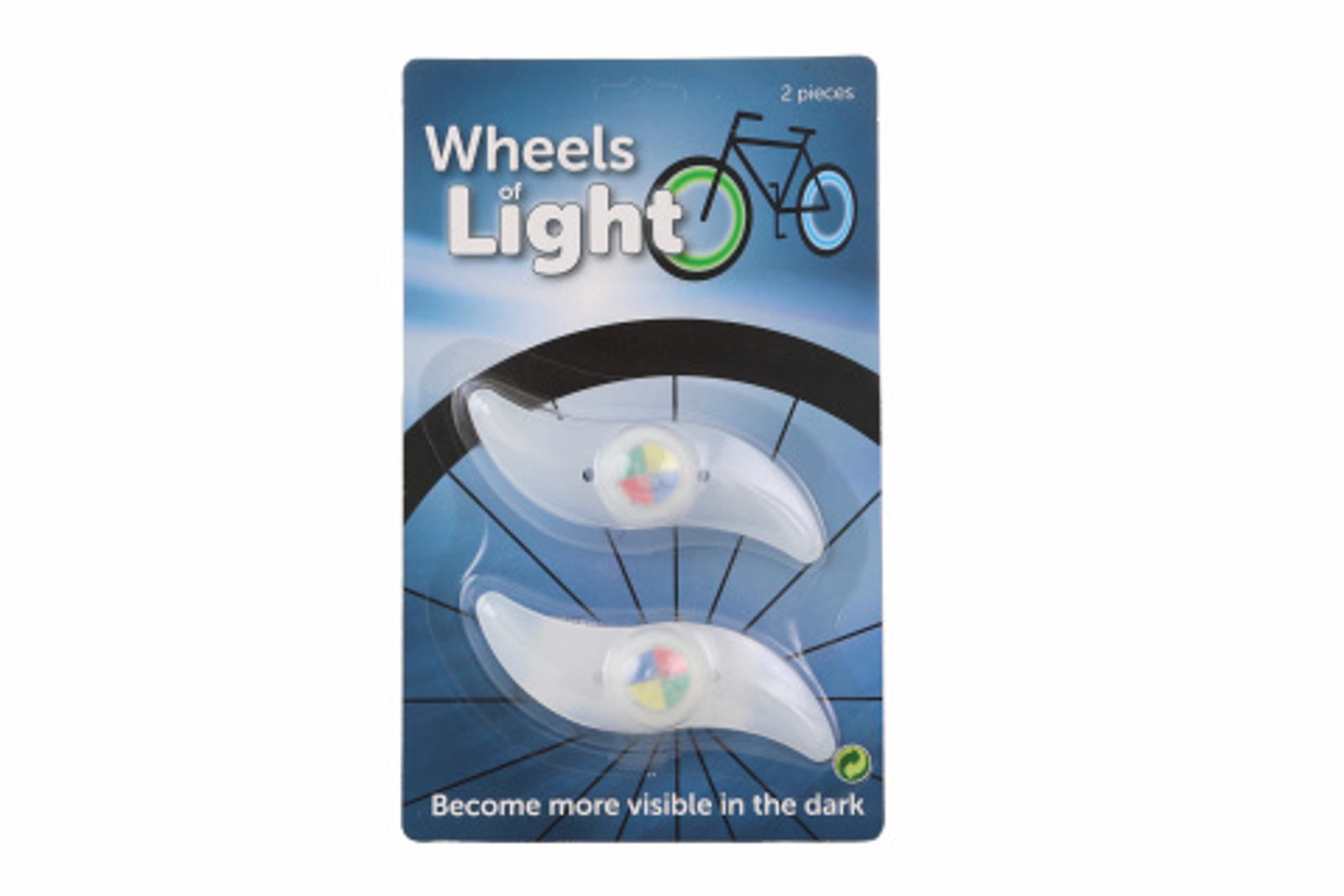 Sada 2 světýlek na kolo. Výrobek je na baterie , které jsou součástí.