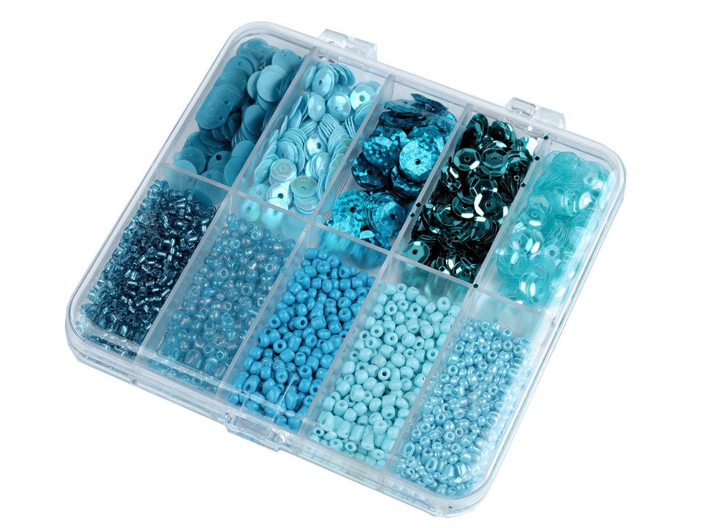 Sada rokajl a flitry v plastovém boxu